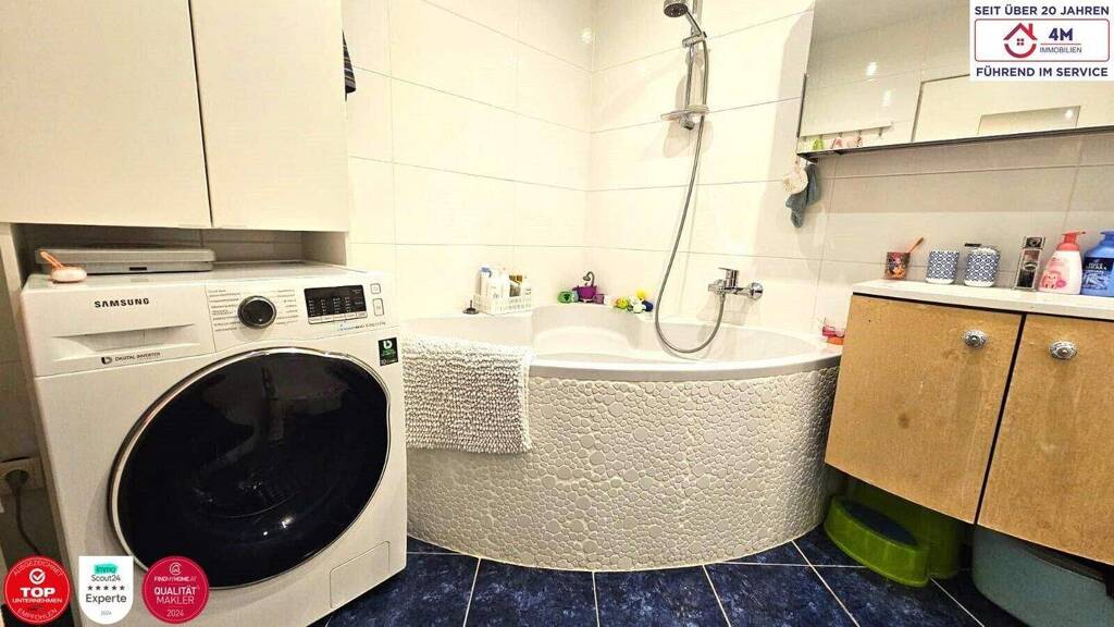 Zwei modern ausgestattete Badezimmer - eines mit Badewanne, eines mit Dusche - bieten zusätzlichen Komfort für Familien oder Paare, die Wert auf Privatsphäre und Funktionalität legen. Abgerundet wird das Raumangebot durch praktische Abstellräume sowie ein Kellerabteil.