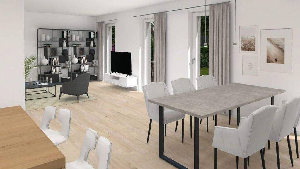Die Wohnfläche verteilt sich auf ein durchdachtes Raumkonzept mit vier Zimmern, das modernen Wohnkomfort und Funktionalität vereint.