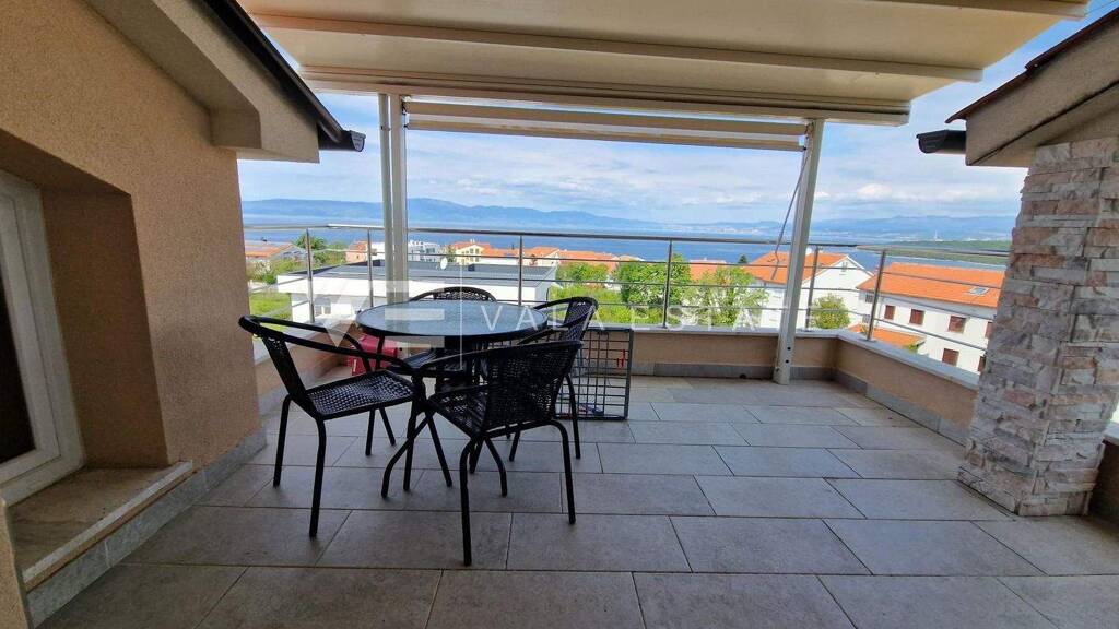 Immobilien Insel Krk, Njivice - zum Verkauf steht eine Wohnung im Dachgeschoss eines Doppelhauses mit einer Gesamtwohnfläche von 64,31 m2. Es besteht aus einer Eingangshalle, zwei Schlafzimmern, einem Badezimmer, einer Küche mit Esszimmer und einem Wohnzimmer mit Zugang zu einer Terrasse/Balkon mit einem schönen offenen Blick auf das Meer. Hochwertige Konstruktion und Ausstattung, Fußbodenheizung und Klimaanlage, einbruchhemmende Eingangstüren und PVC-Tischlerei mit eingebauten Moskitonetzen sind die Merkmale dieser Wohnung. Es hat einen Parkplatz und einen Hof von 27,94 m2 im gemeinsamen Hof des Hauses. Ausgezeichnete Lage am Rande der Grünzone, umgeben von Stille, nur 500 m von schönen Stränden und 800 m vom Zentrum des Dorfes und allen Einrichtungen entfernt. Die Wohnung verfügt über eine ordnungsgemäße Dokumentation und ist sofort bezugsfertig.