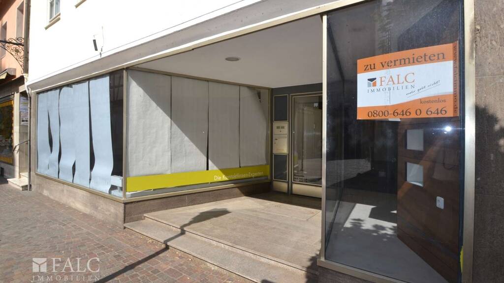 Die Gesamtfläche beträgt ca. 137 m². Das Ladenlokal hat einen überdachten Eingangsbereich mit anschließenden Verkauf, Büro, Gäste-WC und Lagerraum. Die Schaufensterfront ist ca. 8 Meter breit.