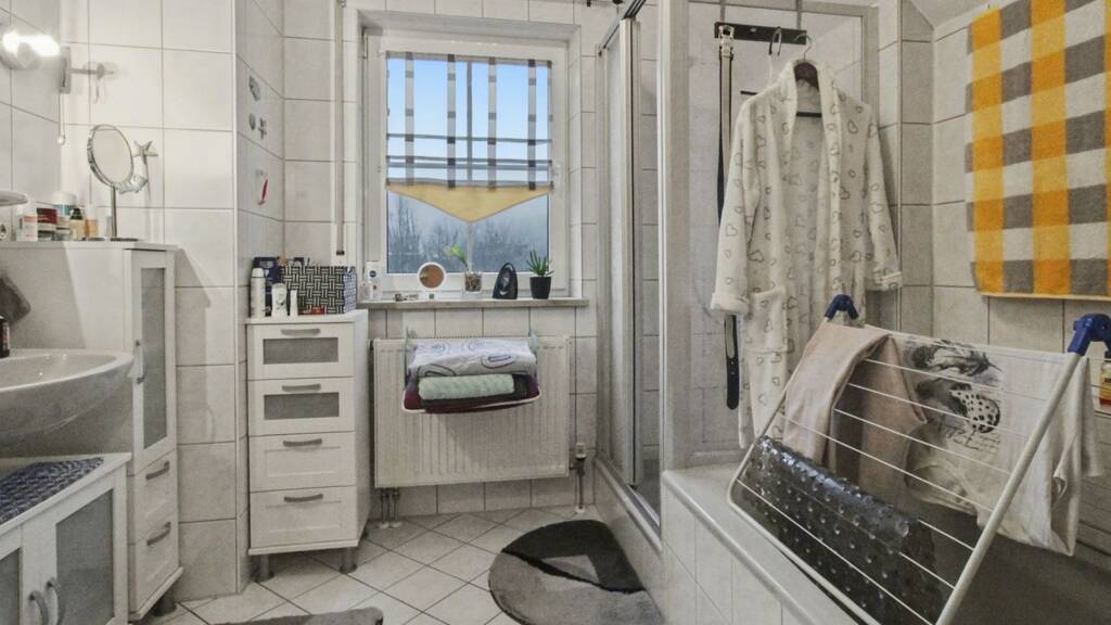 Aufgeteilt wird die Wohnfläche auf 2 Etagen und 4 Zimmer. Daneben umfasst der Grundriss des Objektes ein Badezimmer mit Dusche und Badewanne sowie ein Gäste-WC. In puncto Ausstattung wartet die Immobilie bspw. mit einer Einbauküche, einem Kaminofen sowie einem Glasfaseranschluss auf