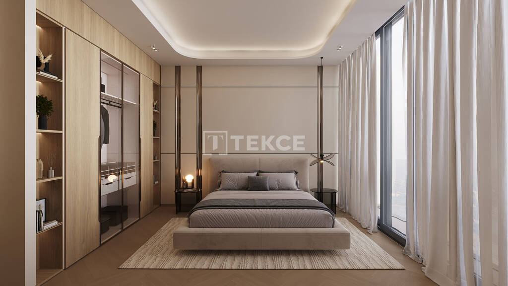Das Projekt bietet ein außergewöhnliches Wohnerlebnis mit sorgfältig gestalteten Einzimmer-, Ein- und Zweizimmerwohnungen an. Die Innenräume vereinen zeitgenössische Eleganz mit Funktionalität und verfügen über offene Grundrisse, die den Raum und das natürliche Licht maximieren. Jede Wohnung ist mit hochwertigen Materialien wie geriffeltem Travertin, Holzfurnier und hochwertigen Feinsteinzeugfliesen ausgestattet, die ein edles Ambiente schaffen. Die Einbauschränke bieten reichlich Stauraum, während die modernen Küchen mit hochwertigen Elektrogeräten ausgestattet sind, die sowohl Stil als auch Komfort bieten. Raumhohe Fenster bieten einen atemberaubenden Blick auf die Stadt und verbinden die Innenräume nahtlos mit der lebendigen Umgebung an. Die Badezimmer sind mit luxuriösen Oberflächen wie Travertinmarmor und Corian-Arbeitsplatten ausgestattet und strahlen eine Spa-Atmosphäre aus. Die für ein gehobenes Wohnen konzipierten Residenzen sind mit intelligenter Haustechnik ausgestattet, die den Komfort und die Effizienz erhöht.