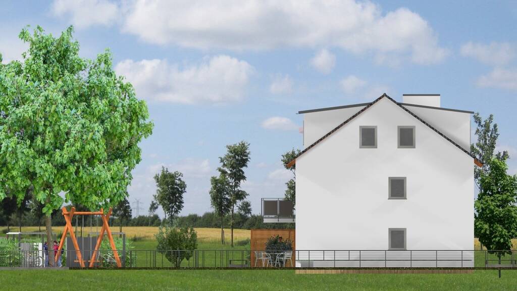 Diese Wohnanlage im GrĂĽnen unter bestehenden Eichen bietet die