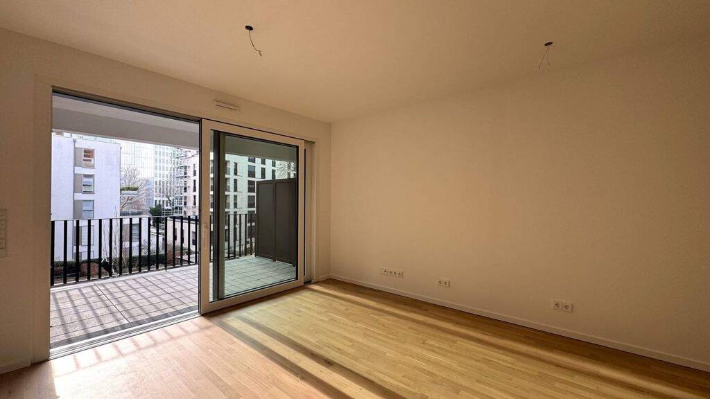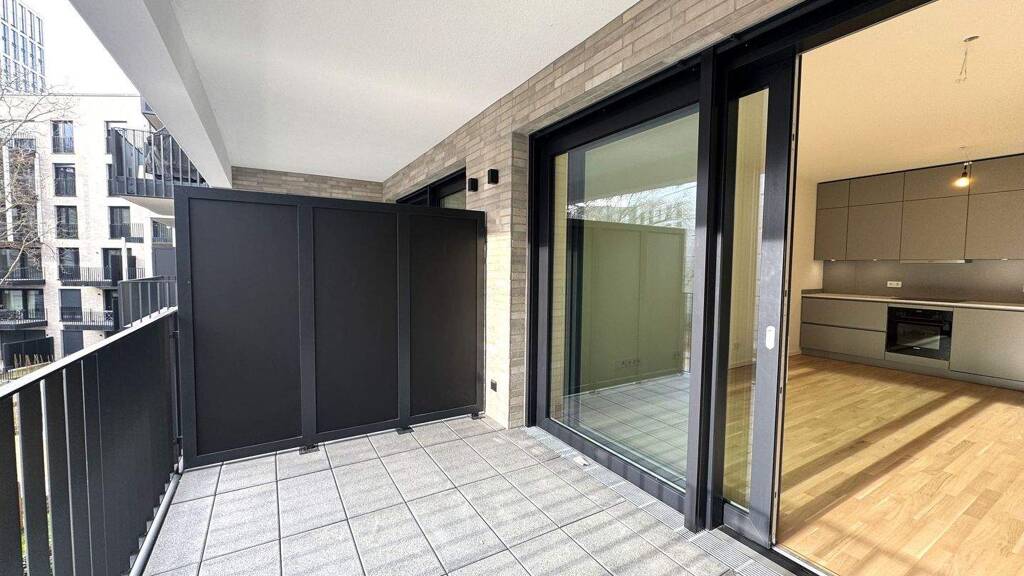 Die moderne 3-Zimmer-Wohnung auf der südlichen Seite des Wohngebäudes vermittelt durch bodentiefe Fenster sowie einer überdurchschnittlich hohen Raumhöhe dem Bewohner ein positives Wohngefühl. Alle Wohnräume sind mit Parkett ausgelegt und verfügen über Fußbodenheizung. Die bodentiefen Fenster sind zudem mit elektrischen Rollläden versehen. Die beiden Schlafzimmer werden durch den Flur erschlossen und garantieren Ihnen einen angenehmen Schlaf. Die beiden Bäder verfügen über eine Wanne und eine bodengleiche Dusche mit Raindance-Brause. Hochwertige Fliesen, die strahlend weiße Sanitärausstattung und der Handtuchheizkörper sind geschmackvoll aufeinander abgestimmt. Das Herzstück der Wohnung ist das Wohnzimmer mit integrierter Kochnische, die bereits mit einer hochwertigen Einbauküche ausgestattet ist. Sowohl das Wohnzimmer als auch das kleine Schlafzimmer ermöglichen Ihnen den Zugang zur nach Süden ausgerichteten Loggia, auf der Sie erholsame Stunden verbringen können. Ein separater Abstellraum inkl. Anschluss für die Waschmaschine schafft zusätzlichen Comfort. Der Schnitt der 3-Zimmer-Wohnung ist durchdacht und ermöglicht eine vorteilhafte Einrichtung. Die Ausstattung ist ausgesprochen gehoben und stilvoll. Eine zentrale Schließanlage für die Haus- und Wohnungseingangstür ist selbstverständlich. In der Wohnung befindet sich eine Video-Gegensprechanlage mit Türöffner-Taste und Monitor. Sowohl das Treppenhaus als auch der Aufzug bestechen durch ein modernes innovatives Design.