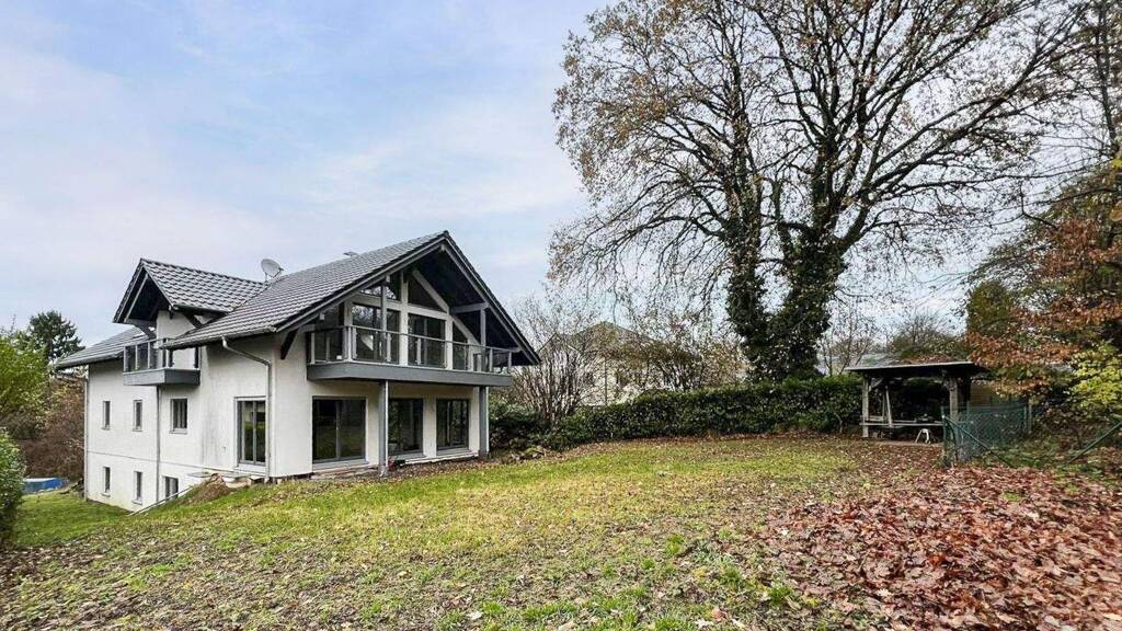 Das im Jahr 2011 errichtetes Einfamilienhaus mit potenzieller präsentiert sich als modernes und energetisch äußerst effizientes mit offenem Wohnraumkonzept und einer großzügigen Wohnfläche von rund 285 m², welche 6 Zimmer, 3 Vollbäder, 2 Terrassen und 2 Balkone mit schönem Blick ins Grüne umfasst. Das Haus ist nicht unterkellert, bietet jedoch im Erdgeschoss mehrere praktische Nebenräume, von denen einer bereits für den Einbau einer Sauna sowie einer Dusche vorbereitet ist.