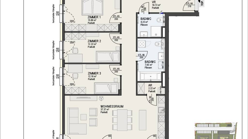 Die Wohnungen sind modern gestaltet und mit hochwertigen Materialien ausgestattet. Der smarte Grundriss bietet viel Platz für individuelle Wohnmöglichkeiten. Die großzügigen Balkone, Terrassen oder Gärten laden zum Entspannen ein. Dank der Autobahnnähe sind auch weitere Städte schnell erreichbar - so steht einem Ausflug ins Grüne nichts im Wege. Und das Beste daran: Die Wohnungen werden energiebewusst gebaut und garantieren Ihnen somit niedrige Energiekosten sowie eine hohe Lebensqualität. Unsere schlüsselfertigen Wohnungen bieten Ihnen zahlreiche Vorteile, die Sie begeistern werden. Mit uns können Sie aktiv mitgestalten und Ihr neues Zuhause nach Ihren individuellen Wünschen einrichten. Die öffentlichen Verkehrsmittel halten direkt vor Ihrer Haustür und Einkaufsmöglichkeiten sind fußläufig erreichbar. Ein weiterer Pluspunkt ist der grüne Lebensraum, in dem sich unsere Häuser befinden. Nicht zuletzt überzeugt unsere Baumeisterqualität. Wir setzen auf massive Bauweise und garantieren Ihnen so ein langlebiges Zuhause. Kontaktieren Sie uns noch heute und sicheren Sie sich Ihren Lebens(T)raum!