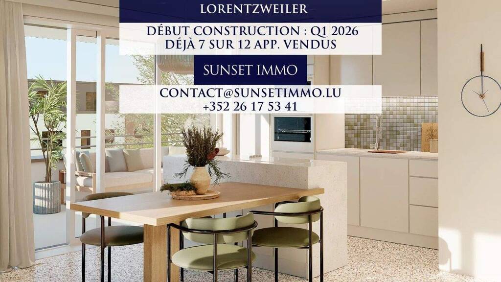 Sunset Immo freut sich, Ihnen diese wunderschöne 3-Zimmer-Wohnung anzubieten, gelegen im Erdgeschoss einer neuen und modernen Wohnresidenz mit 12 Einheiten, ideal im Herzen von Lorentzweiler.
