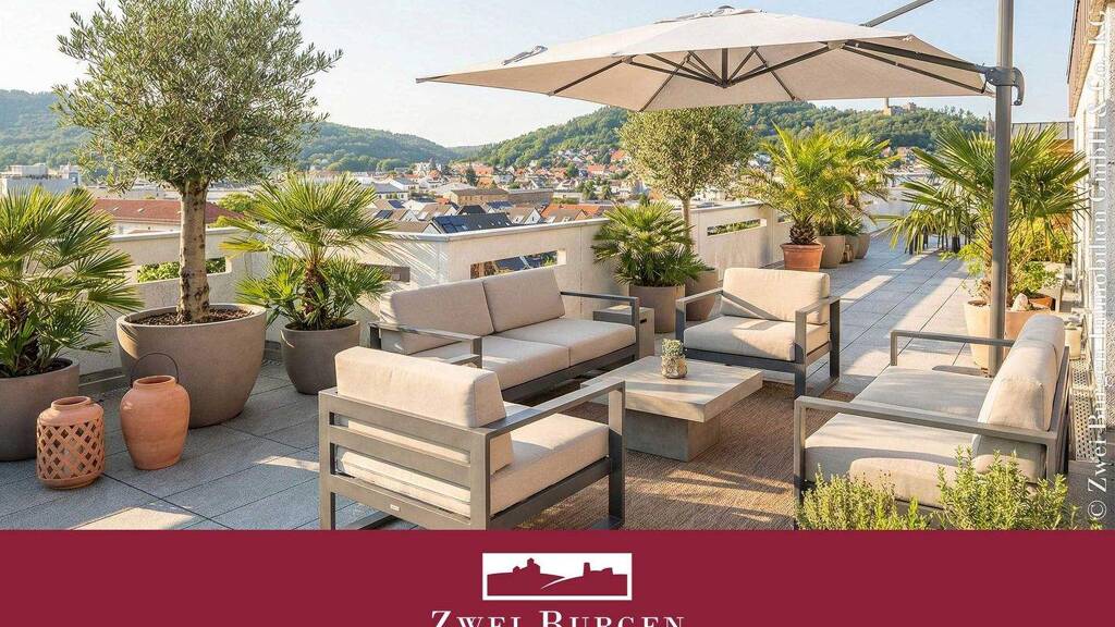 Hier wohnen Sie über den Dächern der Stadt! Lassen Sie den Alltag hinter sich und genießen Sie Ihre private Oase. Diese komplett modernisierte Penthouse-Wohnung im 7. Obergeschoss beeindruckt durch lichtdurchflutete Räume und eine große Dachterrasse. Von hier aus genießen Sie einen atemberaubenden 360°-Weitblick auf die Weinheimer Burgen, die malerischen Hanglagen und die Rheinebene.