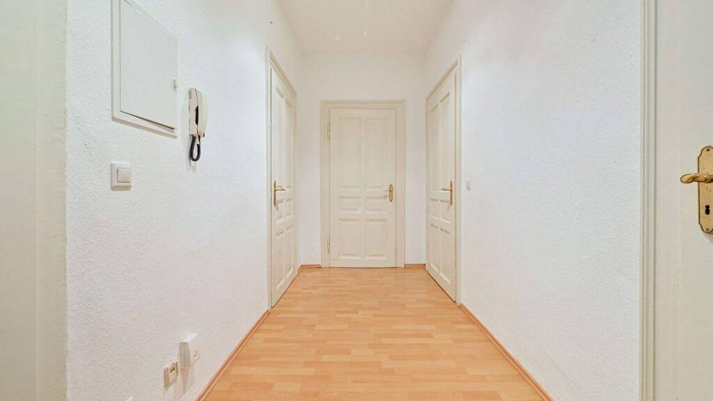 Die Wohnung besticht durch einen gut geschnittenen Grundriss mit einem zentralen Flur, der alle Räume miteinander verbindet. Das großzügige Wohnzimmer bietet viel Platz für gemütliche Stunden und einen schönen Ausblick. Vom Schlafzimmer aus gelangen Sie direkt auf den Balkon - ideal, um den Tag entspannt ausklingen zu lassen.