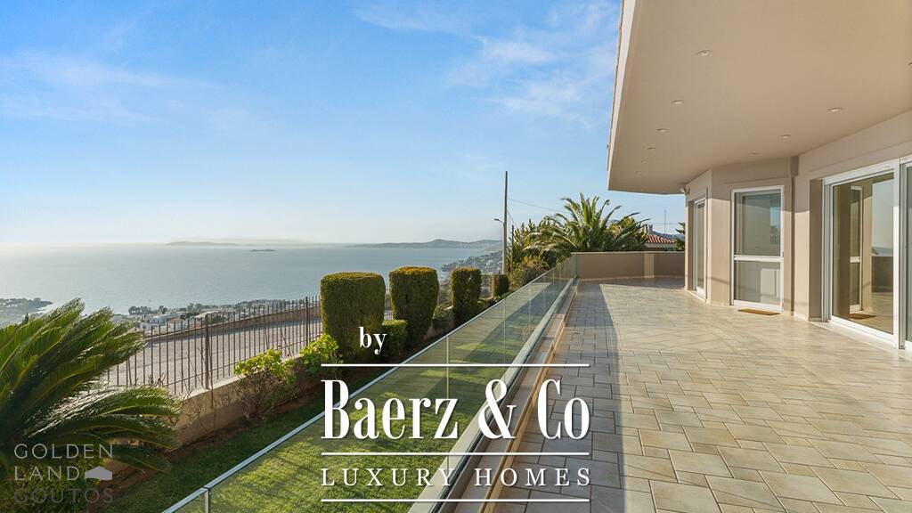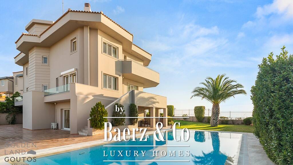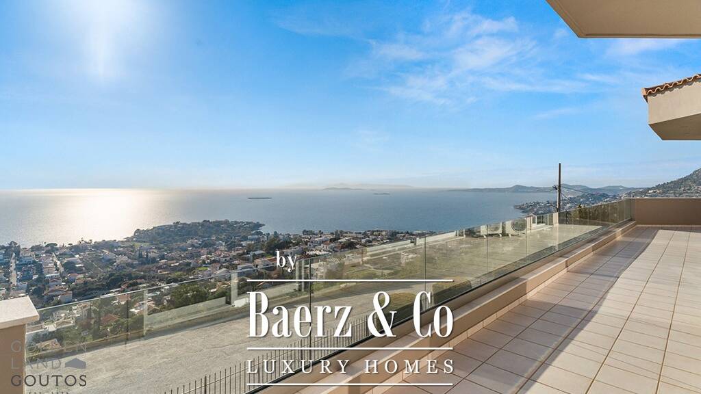 positioned atop a scenic hill, just , this magnificent villa boasts of the saronic bay. the vistas stretch across the crystal-clear waters to the picturesque islands of .