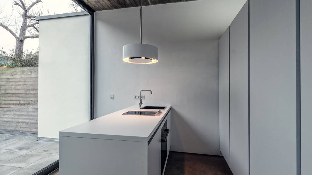 Auf einer Fläche von ca. 70 m² bietet die Wohnung höchsten Komfort: Es gibt ein geräumiges Wohnzimmer mit offener Küche, ein Doppelbett, das durch Modulschrank vom Schlafbereich getrennt ist, sowie ein modernes Duschbad. Das Apartment beeindruckt durch seine Designer-Möbel und -Elemente sowie eine Raumhöhe von über drei Metern. Besonders hervorzuheben ist die top ausgestattete italienische Designerküche mit Dampgbackofen, Heissluftherd, großer Gefrierkombi und Spülmaschine, welche das Herz eines jeden Hobbykochs höher schlagen lässt. Die Sichtholz- und Sichtbetondecken, hochwertigen Aluminiumfenster und Eckverglasungen setzen stilvolle Akzente. Eine herrlich-ruhige Dachterrasse mit tollem Ausblick lädt zum Entspannen ein. Zudem ist die Wohnung optimal für Allergiker geeignet. Das Premium Appartement liegt verkehrsgünstig zu Trier und Luxemburg. Alle wichtigen Einrichtungen und Versorgungsmöglichkeiten sind einfach erreichbar. Die intelligente Raumaufteilung und die außergewöhnliche Architektur machen die Wohnung besonders attraktiv. Der Neubau wurde von der Architektenkammer Rheinland-Pfalz ausgezeichnet. Die Wohnung ist bezugsfertig und verfügt über hochwertige Möbel im Design und eine moderne Ausstattung. Das komplett renovierte Badezimmer verfügt über eine geräumige, begehbare Dusche. Der Innenraum besteht aus einem großzügigen, offenen Wohnbereich mit einer gemütlichen Sitzgruppe und einem Essbereich sowie einer geräumigen, offenen Küche mit Kochinsel.