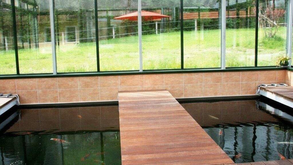 Das zusätzlich errichtete, sehr große Glashaus kann zu verschiedensten Zwecken genutzt und verwendet werden, u.a. wurde ein beheizbares Becken z.B. für eine KOI-Fischzucht eingebaut.