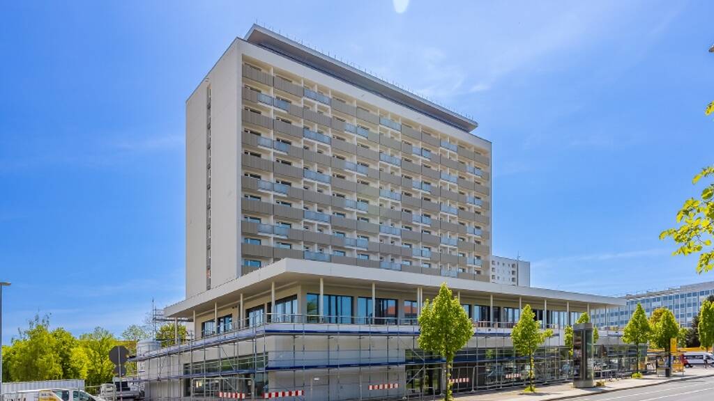 Direkt gegenüber dem Pirnaischen Platz wurde ein repräsentatives Wohn- und Geschäftshaus errichtet. Das Objekt besticht durch seine moderne Architektur und Ausstattung.