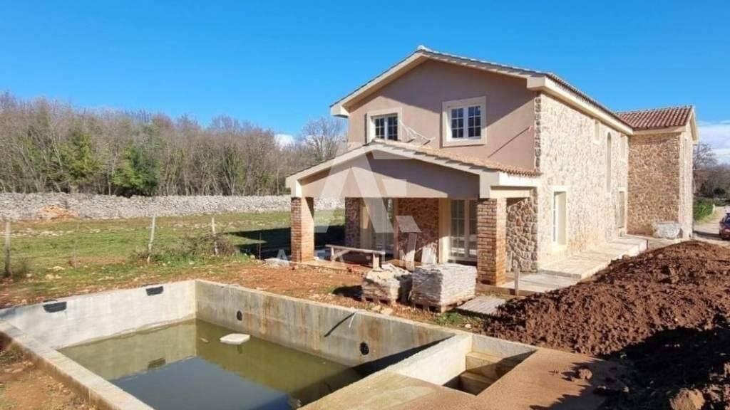 Vrbnik, Umgebung von Neubauten, Doppelhaushälfte aus Stein mit Swimmingpool in ruhiger Lage!! Die Doppelhaushälfte wurde 2023 erbaut, hat eine Wohnfläche von 150m2 und verfügt über Erdgeschoss und Obergeschoss. Das geräumige Erdgeschoss ist reich an natürlichem Licht, während es aus einer Eingangshalle, einem Badezimmer, einer Küche, einem Esszimmer und einem Wohnzimmer besteht, von dem es einen Ausgang zur überdachten Außenterrasse mit Swimmingpool und Liegewiese gibt. Die Innentreppe führt in den ersten Stock, wo sich drei Schlafzimmer und zwei Badezimmer befinden. Hochwertige Bauweise, Top-Ausstattung. Das Haus ist ausgestattet mit PVC-Tischlerei, hochwertigen keramischen Bodenbelägen, hochwertigen Sanitäranlagen, Klimaanlage in allen Räumen, Fußbodenheizung in allen Räumen. Das Steinhaus befindet sich 1.000 m vom Meer, landschaftlich gestalteten Stränden und dazugehörigen Einrichtungen entfernt, die Fertigstellung der Arbeiten ist für 07/2023 geplant, die Dokumentation ist in Ordnung.