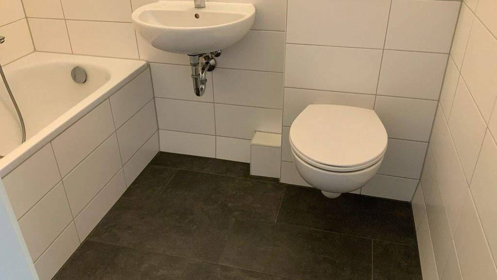 Die Wohnung verfügt über ein gefliestes Bad mit Wanne. Alle Innentüren sind weiß. Der Fußboden hat einen PVC in Holzoptik. Die Wände und Decken haben weiße Raufasertapeten.