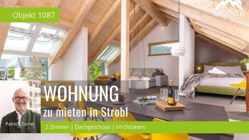 Diese Wohnung liegt im 2 Stock, Dachgeschoss, eines hochwertig generalsanierten Hauses mit nur zwei Wohneinheiten - ruhig und dennoch mitten im Herzen von Strobl am Wolfgangsee. In nur 250 Metern erreichen Sie den See, Supermarkt, Kindergarten, Schule sowie den Busbahnhof mit Verbindungen nach Salzburg und Bad Ischl sind bequem in wenigen Gehminuten erreichbar. Die zentrale Lage macht die Wohnung zum perfekten Ausgangspunkt für vielfältige Freizeit-, Sport- und Erholungsmöglichkeiten in einer der schönsten Regionen des Salzkammerguts.
