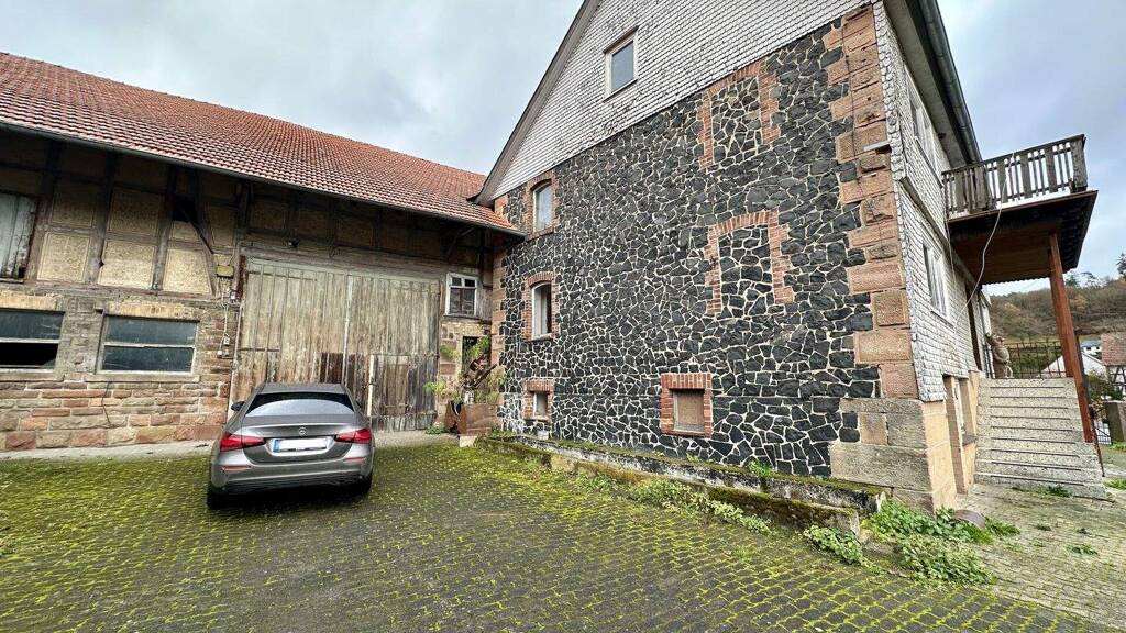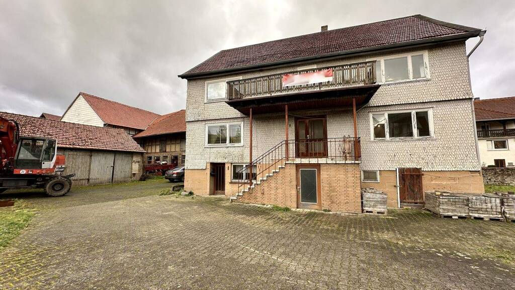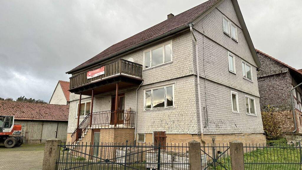 Dieses sanierungsbedürftige Einfamilienhaus in traditioneller Fachwerkbauweise wurde ca. im Jahr 1990 erbaut und befindet sich im ruhigen Ortsteil Appenfeld der Gemeinde Knüllwald. Mit einer Wohnfläche von ca. 292 m², verteilt auf zwei Etagen, bietet das Objekt außergewöhnlich viel Platz für eine große Familie oder individuell gestaltbare Wohnkonzepte. Das Haus ist vollständig unterkellert und verfügt über einen von außen begehbaren Keller, in dem sich unter anderem ein Partykeller sowie mehrere weitere Abstell- und Lagerräume befinden. Im Erdgeschoss stehen vier Zimmer, eine kleine Küche sowie ein Badezimmer mit Badewanne zur Verfügung. Das Obergeschoss bietet vier weitere Zimmer, ein Gäste-WC, ein zusätzliches Badezimmer mit Badewanne sowie den Zugang zu einem Balkon, der einen Blick auf den Hofbereich ermöglicht. Das Dachgeschoss ist teilweise ausgebaut, befindet sich jedoch noch im ursprünglichen Rohbauzustand und bietet somit Potenzial für zusätzlichen Wohnraum oder individuelle Gestaltungsideen. Zum Anwesen gehören zudem eine große Scheune, drei Garagen sowie ein großzügiger Hof, der vielfältige Nutzungsmöglichkeiten eröffnet - sei es als Abstellfläche oder Arbeitsbereich. Optional besteht die Möglichkeit, zusätzliches Land zu erwerben oder zu pachten, was das Objekt besonders interessant für Tierhaltung, Hobbylandwirtschaft oder gewerbliche Nutzung macht.
