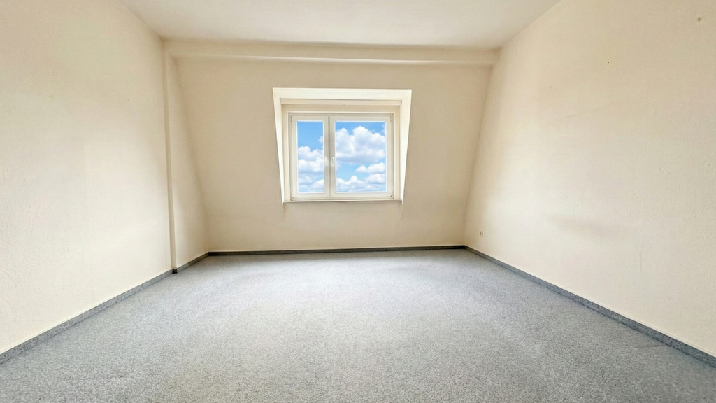 2. Das versteckte Potenzial: Der Dachboden-Rohling Was dieses Angebot von herkömmlichen Bestandswohnungen abhebt, ist das notariell gesicherte Recht, das in der Immobilie schlummert. Zur Wohnung gehört das exklusive Sondernutzungsrecht am direkt darüberliegenden Spitzboden (Gesamtfläche Dachboden ca. 105 m², davon rechnerisch ca. 65 m² dieser Einheit zugeordnet) – inklusive des Bereichs für einen möglichen Treppenaufgang.