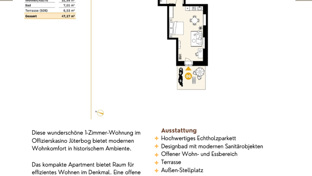 WOHN T RAUM - Exklusive 1-Zimmer-Wohnung im Offizierskasino Jüterbog