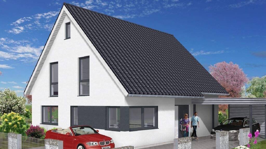 Viel Platz für Sie und Ihre Familie bietet dieser Vorschlag eines klassisch-modernen Satteldachhauses mit Zwerchgiebel. Die Wohnfläche beträgt ca. 148 m² auf einem großen Grundstück von ca. 538 m². Das Erdgeschoss verfügt über einen Wohn-/Essraum mit angeschlossener, offener Küche, welche z.B. auch mit einer Doppelschiebetür zu schließen wäre. Ein kleiner zusätzlicher Raum lässt sich ideal als Büro oder Hobbyraum verwenden. Der Hauwirtschaftsraum sowie das Gäste-WC runden das Raumangebot im Erdgeschoss ab. Das Dachgeschoss teilt sich auf in drei sehr großzügige Schlafräume mit jeweils um die 20 m² Grundfläche sowie einem komfortablen Badezimmer.