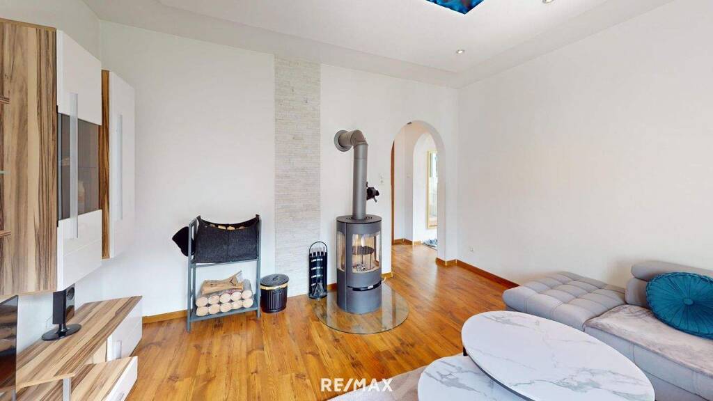 Die praktische Küche mit Essbereich sorgt für Komfort im Alltag, während das Badezimmer mit Dusche und WC ausgestattet ist. Die Waschnische ist auf derselben Ebene im Treppenhaus gut erreichbar. Erwähnenswert ist außerdem die verglaste Loggia, welche früher mal ein Balkon war, die zusätzlichen Wohnraum und ein besonderes Wohlfühlambiente bietet. Abgerundet wird das Angebot durch einen Lagerraum, ein Kellerabteil, sowie einen eigenen Garten, welcher von der Wohnung aus nicht unmittelbar zugänglich ist, jedoch zu erholsamen Stunden im Freien einlädt.