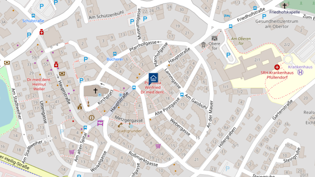 Dias Zahnlabor befindet sich direkt in der Pfullendorfer Altstadt. Einkaufsmöglichkeiten, Ärzte, Apotheken, Kindergärten und Schulen erreicht man bequem zu Fuß.