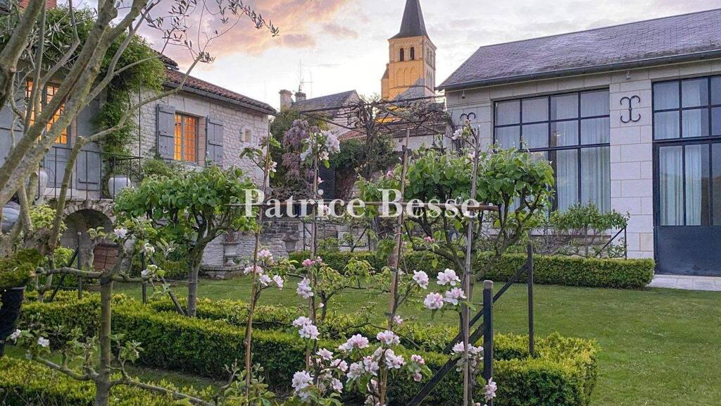 To the rear of the house, on the garden side, a vast tuffeau stone barn topped with a slate roof stands at the end of a drive cobbled with Chauvigny stone. It has been restored in resolutely modern style, with vast volumes bathed in light through the wide, metal-framed windows and doors. The floors are paved with terracotta tiles, while the doors and roof frames are made of oakwood. Between the two buildings, there is a classically inspired garden providing structure to the perspectives, planted with cypress, olive and fruit trees as well as rose bushes, creating a transition towards a relaxation area between the patio, swimming pool and lawn. The property also boasts two vaulted cellars, a well and two storehouses.