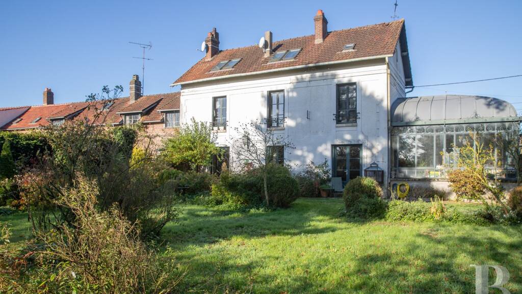 The entrance gate leads to the rear of the property. The façade of an initial building built at the end of the 19th century stands next to an old brick farmhouse. From the gate pillars, the finely crafted roof of the imposing Eiffel-inspired conservatory can be seen. The Directory era style house is coated with white rendering. As with all the buildings that make up the property, it has a gabled roof. Above the conservatory, on the gable end, a bullseye window looks out over the property. Facing the street, there are three openings with Directory era style frames in the main house and five windows in the old brickwork of the former farmhouse. There are several chimney stacks on the roof made of Beauvais tiles. Inside the property's walls stand the country house and conservatory, in front of which the garden stretches out.