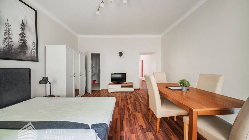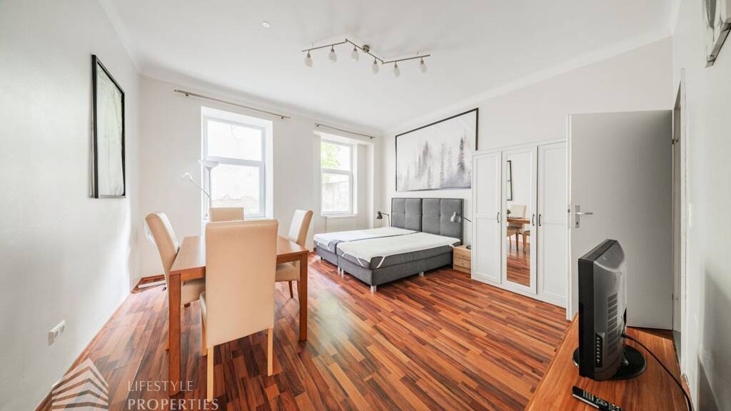Die Wohnung hat eine Größe von ca. 39 m² und befindet sich im Hochparterre eines Stilaltbaus aus der Jahrhundertwende mit glatter Fassade und einladendem Entree. Sie gliedert sich in einen Vorraum, eine Wohnküche, ein Schlafzimmer, ein Bad mit Dusche und ein separates WC.