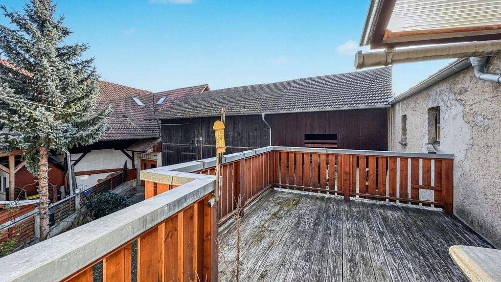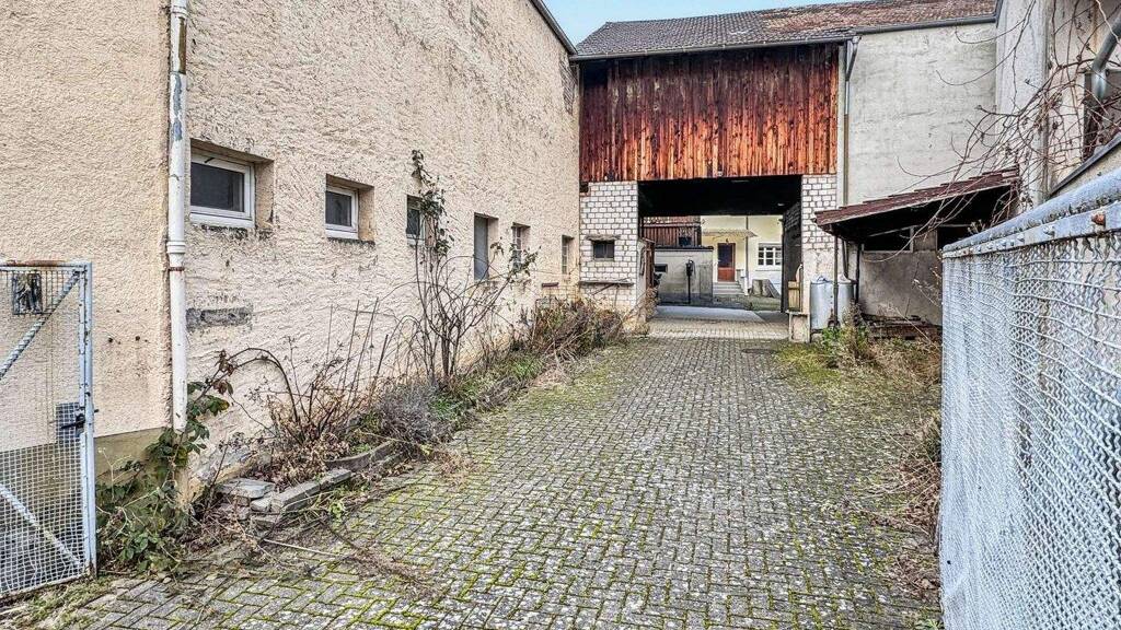 Die Hofeinfahrt führt in einen geschlossenen Innenhof, in dem neben einer Garage weitere Außenstellplätze zur Verfügung stehen. Herzstück des Anwesens ist die ausbaufähige Scheune - mit rund 271 m² Fläche auf zwei Ebenen und solider Grundsubstanz. Sie könnte, je nach Vision, zu weiteren Wohneinheiten, Ateliers, Ferienapartments oder einer Kombination aus Wohnen und Arbeiten entwickelt werden.