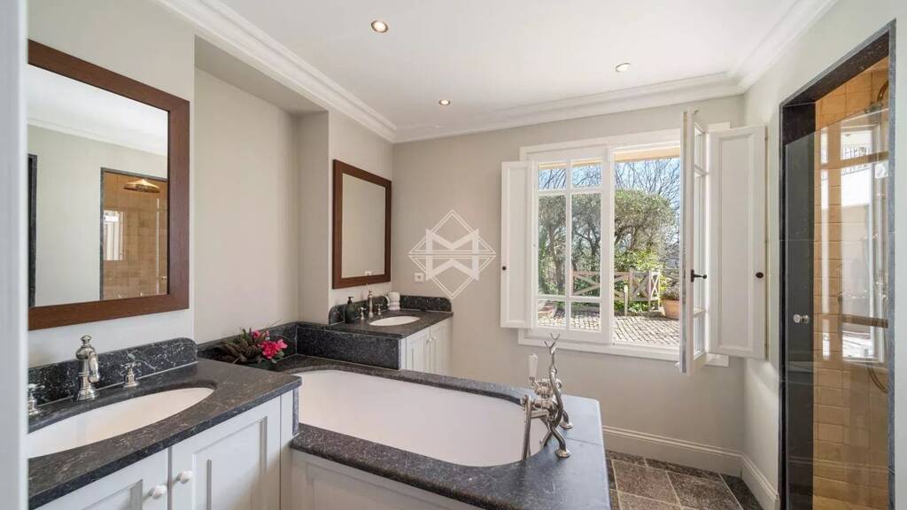 Direkt am alten Dorfkern von Mougins gelegen bietet diese prachtvolle Immobilie von ca. 360 m², verteilt auf zwei Ebenen, einen seltenen Lebensraum, der großzügige Räume, Komfort und spektakuläre Blicke auf die Bucht von Cannes, die Alpen und den Kirchturm des Dorfes vereint.
