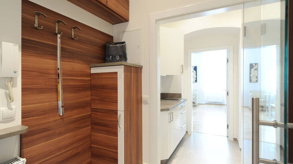 Das moderne und vollmöblierte Apartment mit einer Größe von 30m², verfügt über einen geräumigen Wohnschlafraum, eine voll ausgestattete Küche, einen Vorraum und ein Bad (Dusche, WC und Waschmaschine).