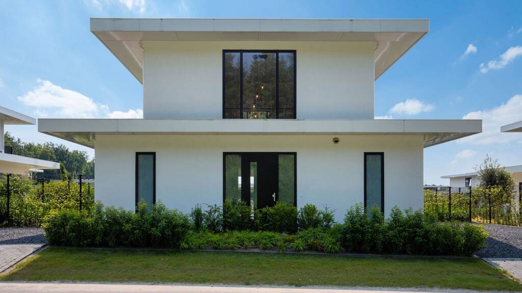 An einem einzigartigen Standort in der Nähe von Harderwijk – im exklusiven Harderwold Villa Resort – und nur wenige Bootsminuten vom Veluwemeer entfernt, befindet sich diese freistehende Ferienvilla des Typs Water, entworfen von Jan des Bouvrie, mit eigenem Bootssteg.