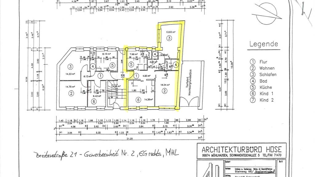 Die Gewerbefläche von ca. 64 m² im Erdgeschoss rechts verteilt sich auf: