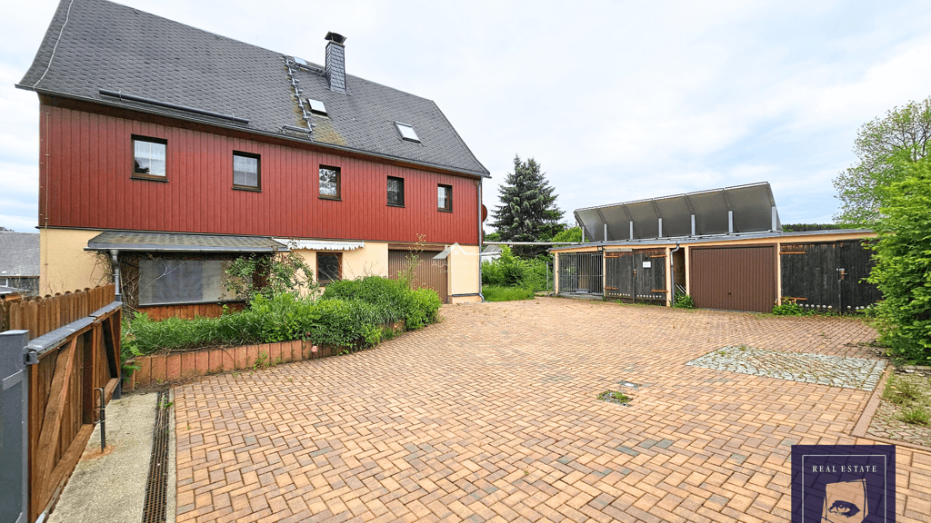 Fakten: - sofort bezugsfertig - 1.386m2 großes Grundstück - Baujahr der Scheune um 1920, Umbau zum Einfamilienhaus 1997 - Lufr-Wasser-Wärmepumpe (Einbau 2020), Holzvergaserofen, Solarthermie, Pufferspeicher - Kaminofen im Wohnzimmer - Bitumenschindeldach - maßgefertigte Einbauküche - extra Stromkreislauf für Weihnachtsbeleuchtung mit Zeitschaltuhr - 3 Garagen (2020 Dach erneuert) + 2 PKW Stellplätze (für Carport vorbereitet) - Hof 2017 neu gepflastert - 4 weitere PKW Stellplätze (verpachtet, Mieteinnahmen ca. 360€/Jahr) - Pavillon und Gewächshaus