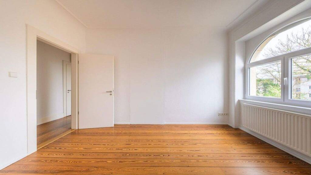 Die Wohnung erstreckt sich über zwei Ebenen und bietet insgesamt ca. 68 m² Wohnfläche. Im Erdgeschoss befinden sich die klassischen Wohnräume mit großzügiger Deckenhöhe von etwa 3 Metern, wodurch eine besonders angenehme und helle Wohnatmosphäre entsteht. Der gepflegte Dielenboden unterstreicht zusätzlich den Altbaucharakter der Wohnung.