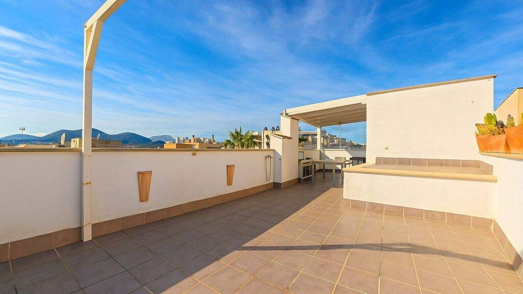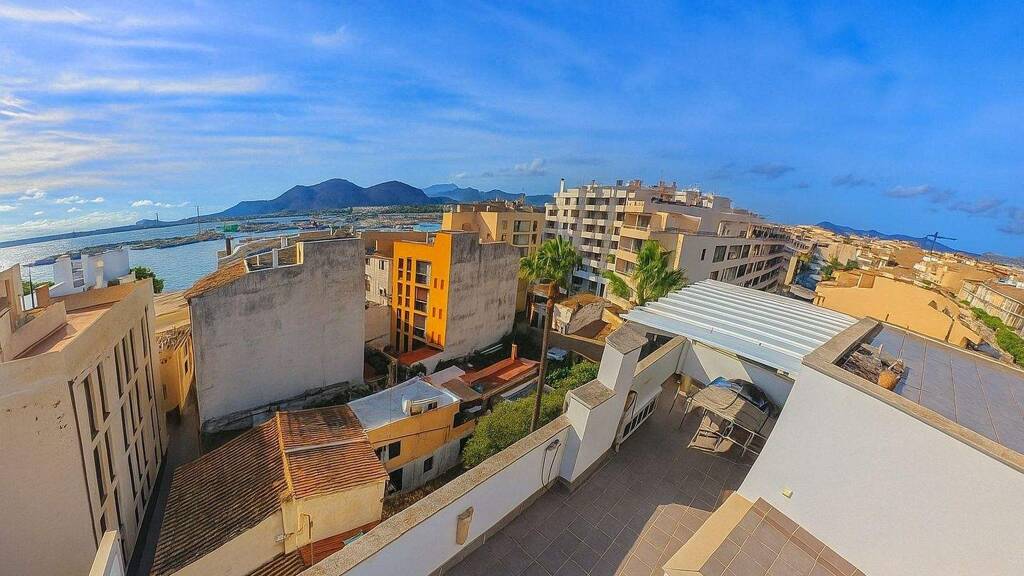 Dieses gepflegte Apartment befindet sich in der dritten Etage eines Wohngebäudes mit Aufzug, direkt am Hafen von Puerto de Alcúdia. Das absolute Highlight ist die großzügige, private Dachterrasse mit stilvoller Lounge-Ecke und einem traumhaften Blick über die Umgebung.