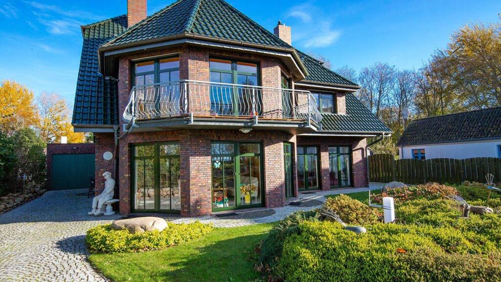Diese außergewöhnliche Villa in erster Reihe zum Wasser verbindet Luxus mit einzigartiger Lage. Hier können Sie Ihren einzigartigen Wohntraum am Meer Wirklichkeit werden lassen - mit traumhaftem Blick auf den Wieker Bodden. Die moderne Villa überrascht mit zwei sehr großzügigen und luxuriös ausgestatteten Wohneinheiten im Stile eines Doppelhauses mit jeweils getrennten Eingängen, separaten Garagen und räumlich getrennten Gärten in parkartiger Atmosphäre. Die sehr ansprechende und die Blicke auf sich ziehende Architektur des Hauses mit einer Schmolz-Klinkerfassade und großen Glasfronten nebst ausladendem Balkon über die gesamte Hausbreite – alles mit herrlichem Blick auf das Wasser – lässt keine Wünsche offen.