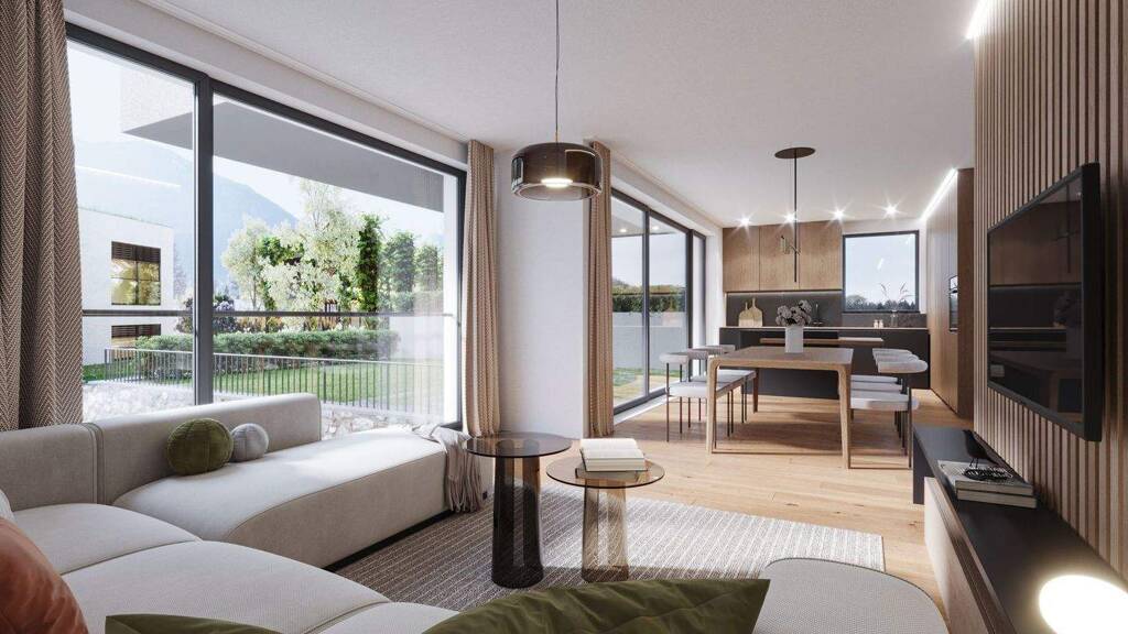 Die Bauweise folgt dem Klimahaus A nature Standard und umfasst moderne technische Lösungen wie eine Wärmepumpe zum Heizen und Kühlen über Bodenheizung, eine kontrollierte Wohnraumlüftung mit Wärmerückgewinnung, Photovoltaik sowie Fenster aus Holz und Aluminium mit Dreifachverglasung. Durchdachte Grundrisse, großzügige Außenflächen und hochwertige Bauqualität schaffen ein Wohnumfeld, das Offenheit, Licht und Komfort vereint.