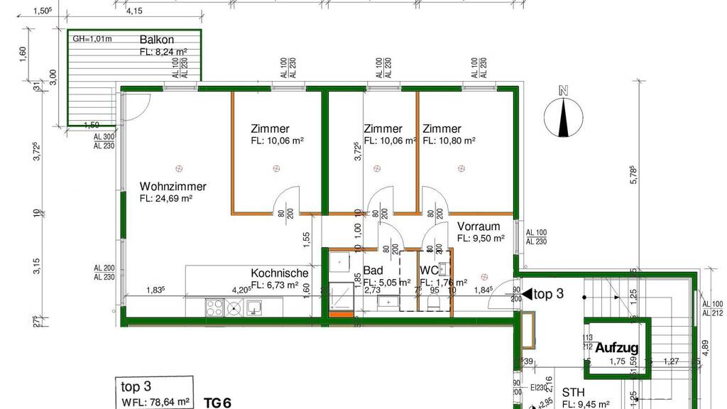 TOP T6.3: ca. 79 m² (4 Zimmer) Balkon ca. 8,24 m² - 1. Liftstock
