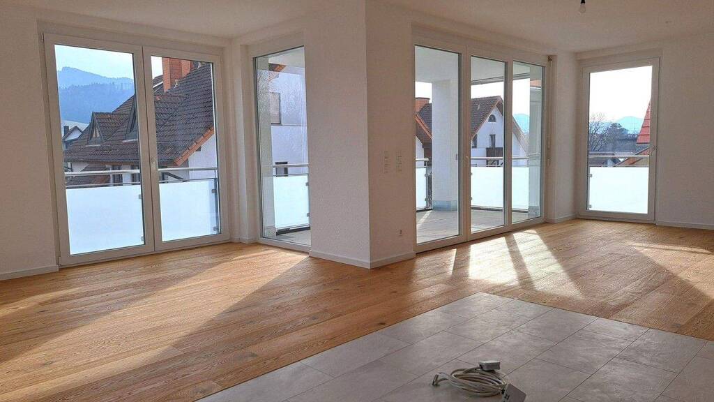 Helle 128m² große 4-Zimmer-Wohnung im 1. OG eines Mehrfamilienhauses, Wohn-Esszimmer mit offener Küche ca. 45m², 3 weitere Zimmer je 15,5 - 20m², große Loggia, kleiner Hauswirschaftsraum plus zusätzliches Kellerabteil. Schöner Blick aus dem Wohnzimmer Richtung Osten (Schauinsland), Richtung Westen zur Kirche und zum Schönberg, Erstbezug, barrierefrei, seniorengerecht, Aufzug, Stellplatz in der Tiefgarage, Effizienzhaus KfW 40-Standard, niedrige Nebenkosten.