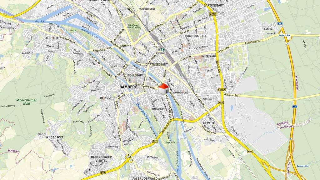 Die Wohnung befindet sich am Heinrichsdamm im Bamberger Osten, einer gewachsenen und gut angebundenen Wohnlage. Die Innenstadt sowie die historische Altstadt mit ihren zahlreichen Geschäften, Cafés und kulturellen Angeboten sind in wenigen Minuten erreichbar - sowohl mit dem Fahrrad als auch mit dem Bus oder Auto.