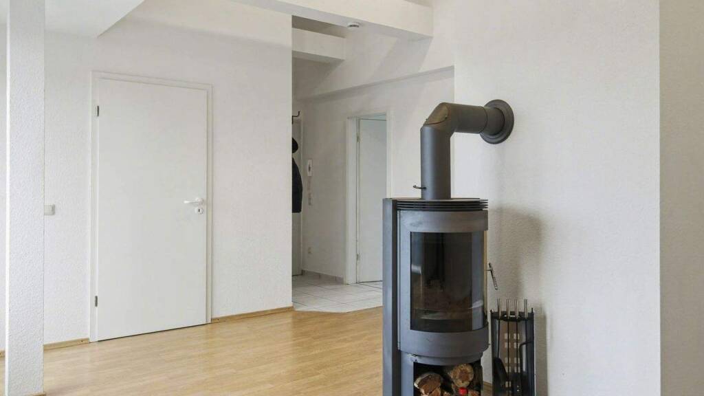 Zentraler Mittelpunkt der Wohnung ist der großzügige Wohnbereich, der sich über die 2024 erneuerte Fensterfront zur Loggia öffnet. Das einfallende Tageslicht verleiht dem Raum eine offene, freundliche Wirkung. Der Kaminofen, seit rund 15 Jahren in Betrieb, ergänzt den Wohnbereich um ein seltenes Ausstattungsmerkmal und schafft eine besondere Atmosphäre. Die vorgelagerte Loggia erweitert den Wohnraum sinnvoll nach außen und bietet einen geschützten Platz mit Blick in die Umgebung.
