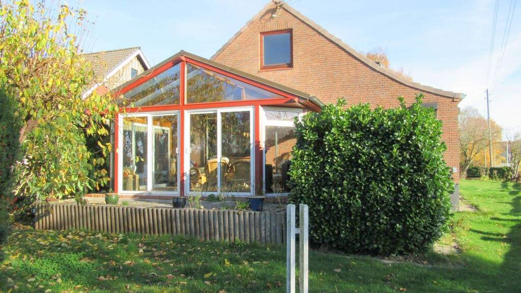 Das Wohnhaus verfügt insgesamt über 6 Zimmer. In der Vergangenheit wurde das Haus innerhalb der Familie mit 2 Parteien bewohnt, die gemeinsam das mittig liegende Duschbad genutzt haben. Daher befinden sich auf der einen Seite des Hauses 4 Zimmer, verteilt über Erd- und Dachgeschoss mit Küche und Ausgang in den Wintergarten und eigenem Eingang und auf der anderen Seite des Hauses 2 Zimmer mit Küche, Speisekammer und eigenem Eingang über den Windfang. Eventuell könnte hier noch ein zusätzliches Bad eingerichtet werden, so dass die Immobilie in 2 vollständige Wohnungen aufgeteilt werden könnte.