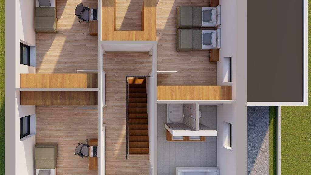 Das Haus sieht Platz für verschiedene Bedürfnisse des Alltags vor: Elternschlafzimmer mit Ankleide, 2 Kinderzimmer, großes Bad im Obergeschoß und Arbeitszimmer bzw. Gästeraum, Gäste-WC, Küche und großes lichtdurchflutetes Wohn-Eß-Zimmer im Erdgeschoß. Eine offene Diele und kompakter Hauswirtschaftsraum mit Zugang zur Garage runden das Spektrum bedarfsorientiert ab.