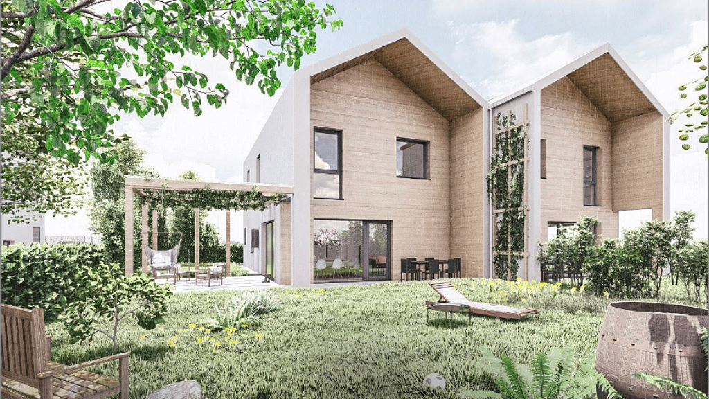 124,35 m² Wohnfläche gelangt man über den Vorraum in den offenen, lichtdurchfluteten Wohnbereich. Der großzügige Wohn-/Essbereich mit angrenzender Küche schafft ein einladendes Zentrum für das tägliche Familienleben und führt direkt auf die Terrasse mit anschließendem großzügigen Garten - ein idealer Rückzugsort für Kinder, Hobbygärtner oder gemütliche Stunden im Freien. Ein Gäste-WC, ein Abstellraum und der Technikraum komplettieren das Erdgeschoss. Über die Treppe öffnet sich das Obergeschoss mit zwei gut geschnittenen Kinderzimmern, einem großzügigen Elternschlafzimmer mit eigenem Schrankraum sowie einem Badezimmer, das Raum für individuelle Gestaltung lässt. Große 3-fach-verglaste Fensterflächen und eine Raumhöhe von ca. 2,60 m sorgen in allen Räumen für viel Licht und ein angenehmes Raumgefühl. Die Doppelhaushälfte wird