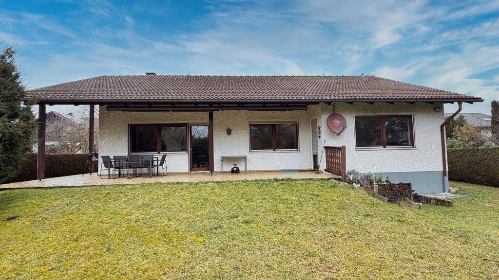 Das im Jahr 1984 errichtete Haus bietet eine Wohnfläche von ca. 140 m² auf einer Ebene – ideal für komfortables Wohnen ohne Treppen. Zusätzlich stehen im Kellergeschoss ca. 95 m² Nutzfläche zur Verfügung, davon sind rund 30 m² beheizt und vielseitig nutzbar, beispielsweise als Hobby-, Fitness- oder Arbeitsbereich.
