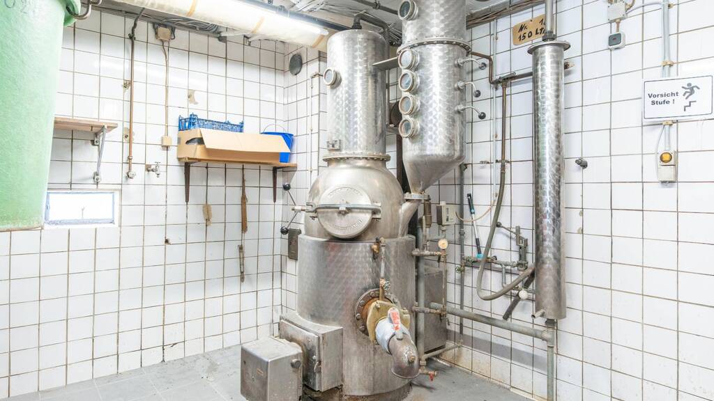 Ein Highlight stellt die Destillerie des Anwesens im Erdgeschoss dar. Diese bietet Ihnen die Möglichkeit Ihre Gäste mit eigens gebrannten Erzeugnissen, wie zum Beispiel edlen Likören zu verköstigen oder aber für den Verkauf freizugeben. Die Auflagen für die Inbetriebnahme der Brennerei können in einem persönlichen Gespräch erörtert werden.