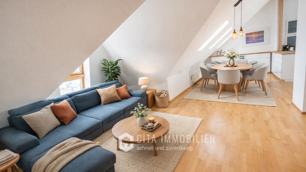 ***Im selben Gebäude steht eine nahezu identische 3-Zimmer-Dachgeschosswohnung (ca. 69 m²) zum Verkauf.***