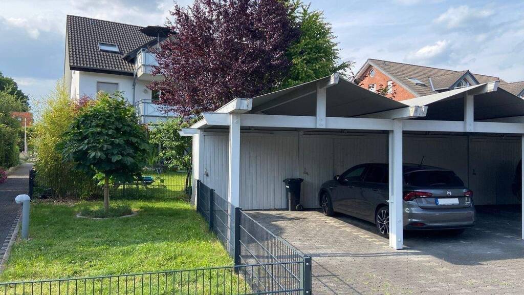 Zu der Wohnung gehört ein Carport (siehe Stellplatz 3). Zum Carport gehört ein abschließbarer Bereich, wo z.B. Fahrräder untergestellt werden können. Weiterhin steht vor dem Haus ein Stellplatz zur Verfügung.